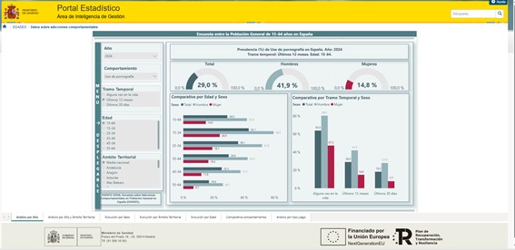 Herramienta interactiva para la consulta y descarga de los resultados de adicciones comportamentales de la Encuesta ESTUDES. Accede en el siguiente enlace